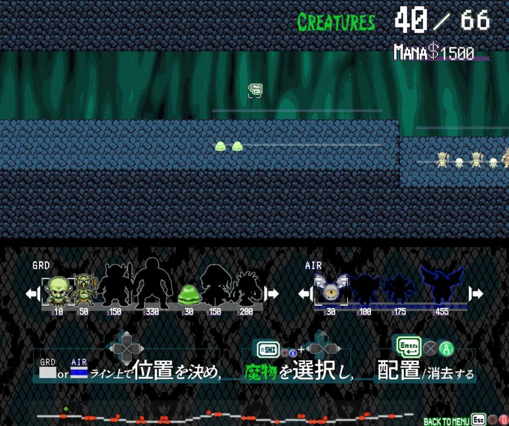 他のMANAの使い道というか限られたプレイヤーの介入事項として、MANAを消費して魔物を配置することができる。