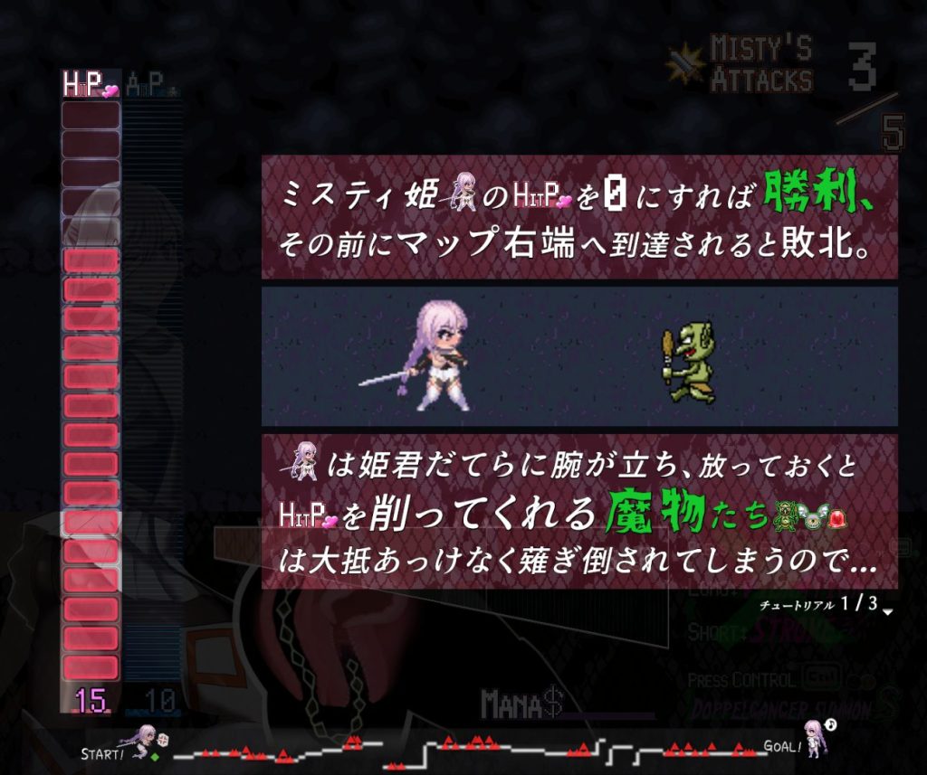 ストーリーを最後まで見るためにはHARDモードをクリアする必要があるが、おそらく詰むことはないし、是非ともミスティの行く末を見届けて欲しい。