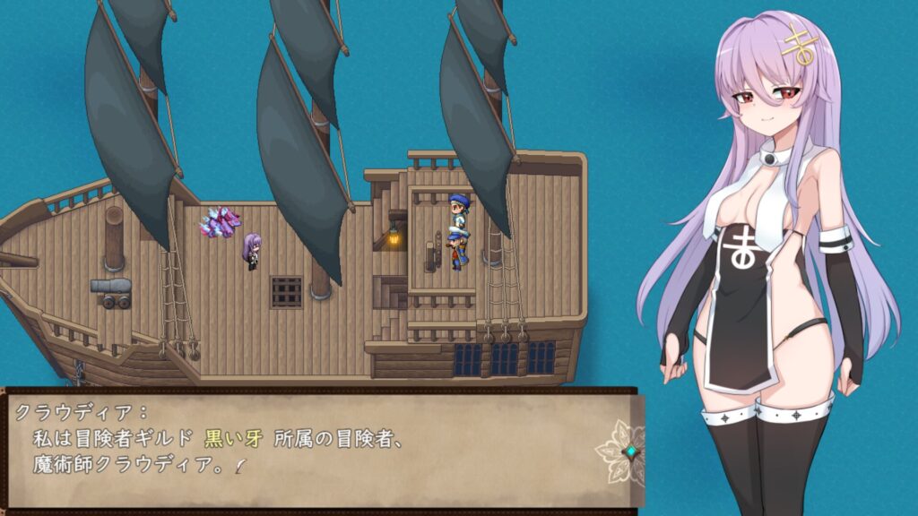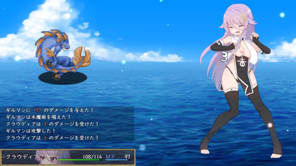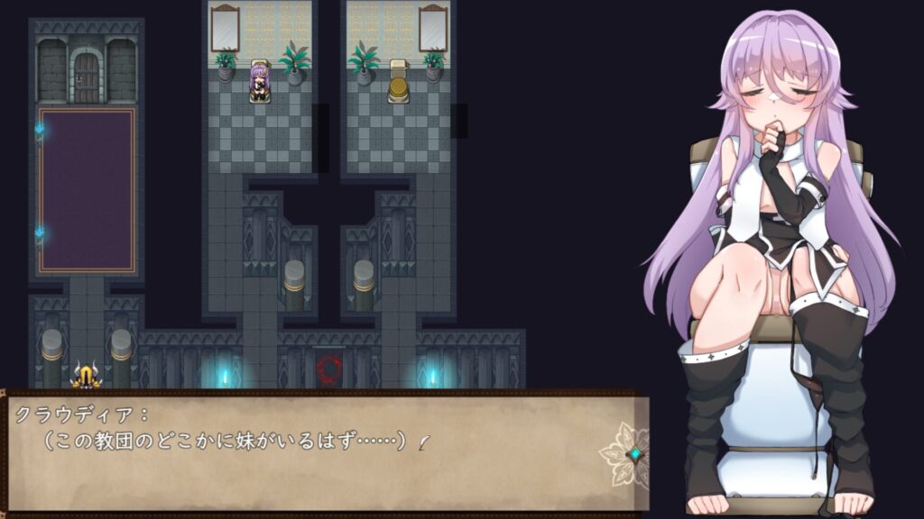 本作はイベント中や戦闘中など、ほぼ常時クラウディアの立ち絵が表示されている。