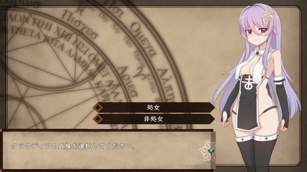 最後に、というか最初に出てくる選択肢なのだが、本作ではクラウディアの貞操を選べる。