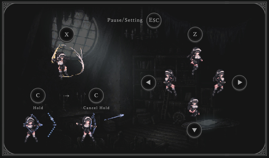 シスターの「ラビアン」がモンスターを退治しながら進む2Dアクションゲーム。